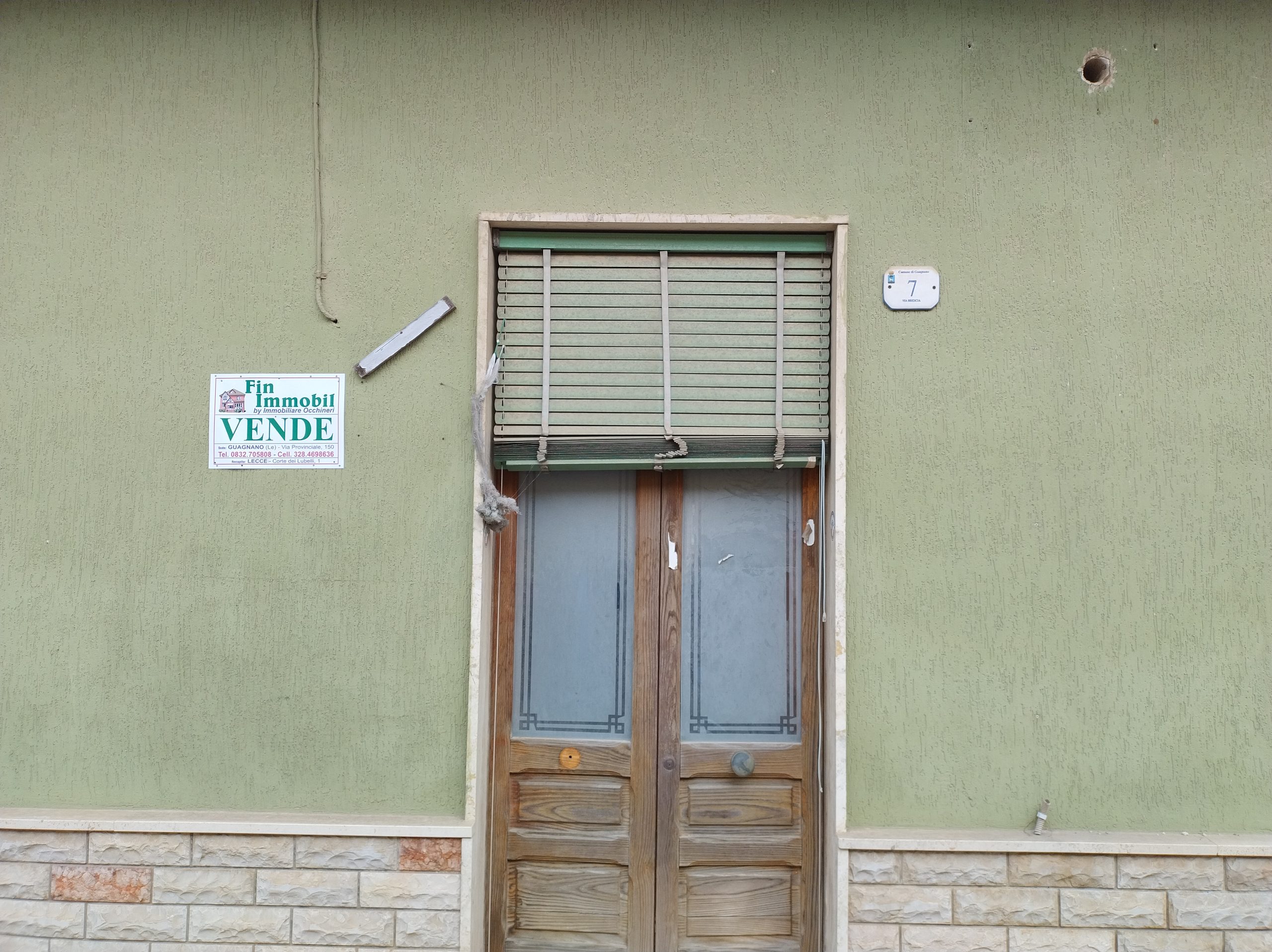 FinImmobil by Immobiliare Occhineri, VENDE, in Guagnano (LE), Via Brescia n.17, con uscita su altra strada, (Via vecchia salice) casa autonoma, situata al piano Terra+1° Piano, da ristrutturare totalmente, iniziati lavori di sbancamento pavimenti, mq.240, vani 10,+giardino mq.200, prezzo Euro 55.000, info cell.328/4698636.
